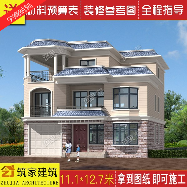 别墅设计图纸三层效果图新农村自建房屋全套建筑施工图纸二层半热门设计联盟服务商